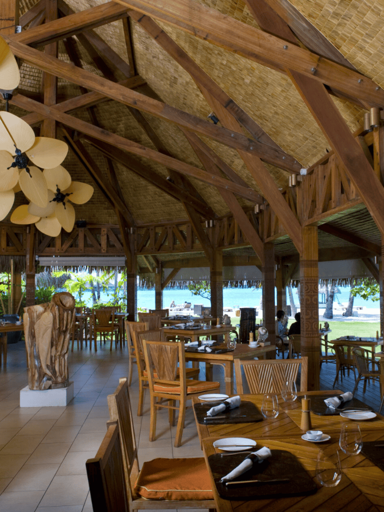 Te Pahu Restaurant at the St. Regis Bora Bora Resort offers a unique dining experience. Set against a backdrop of a sparkling lagoon and white sand beach, guests can savor the rich flavors of French Polynesian cuisine. In the morning, the restaurant transforms with a vibrant breakfast offering where the aroma of fresh pastries and tropical fruits fills the air.