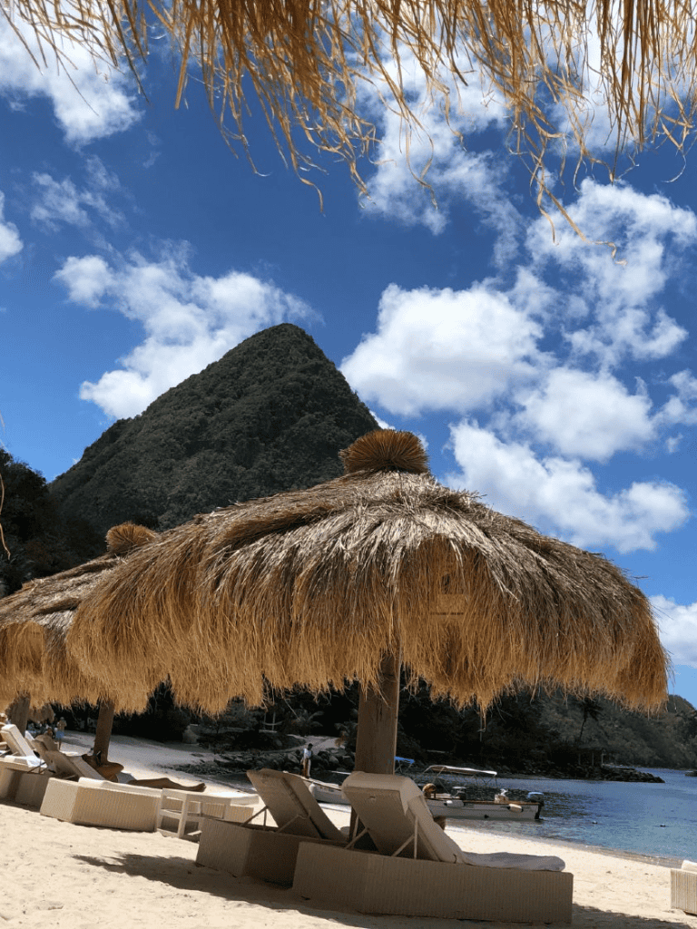 On land, the beach provides a tranquil setting for sunbathing or leisurely walks. The views of the iconic Pitons in the distance create an unforgettable backdrop, making every moment at Sugar Beach feel like a dream.