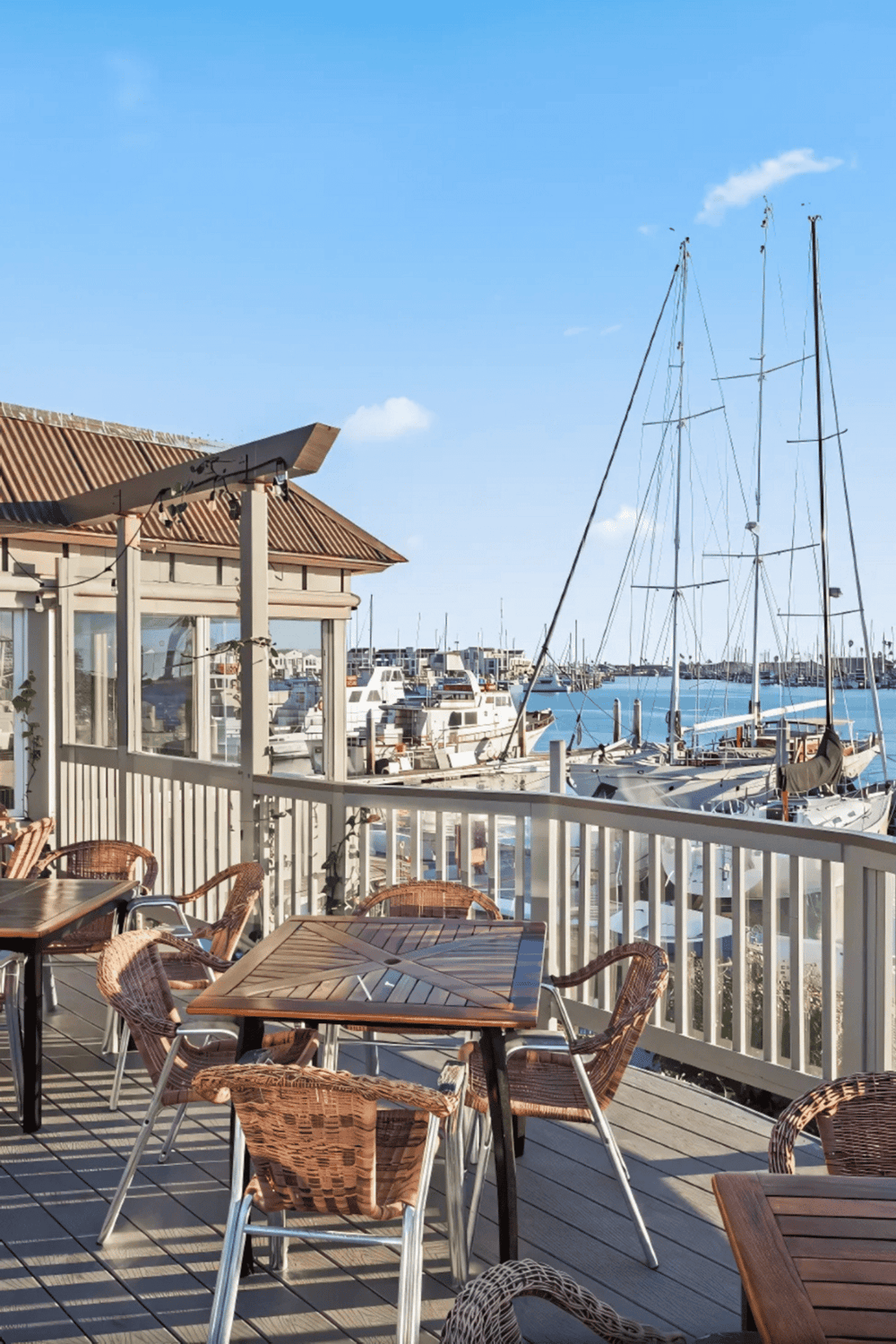 The cafe’s setting allows guests to see dolphins play and maybe catch a glimpse of a rocket launch. Guests can relax and soak in the vibrant port atmosphere with cold drinks.