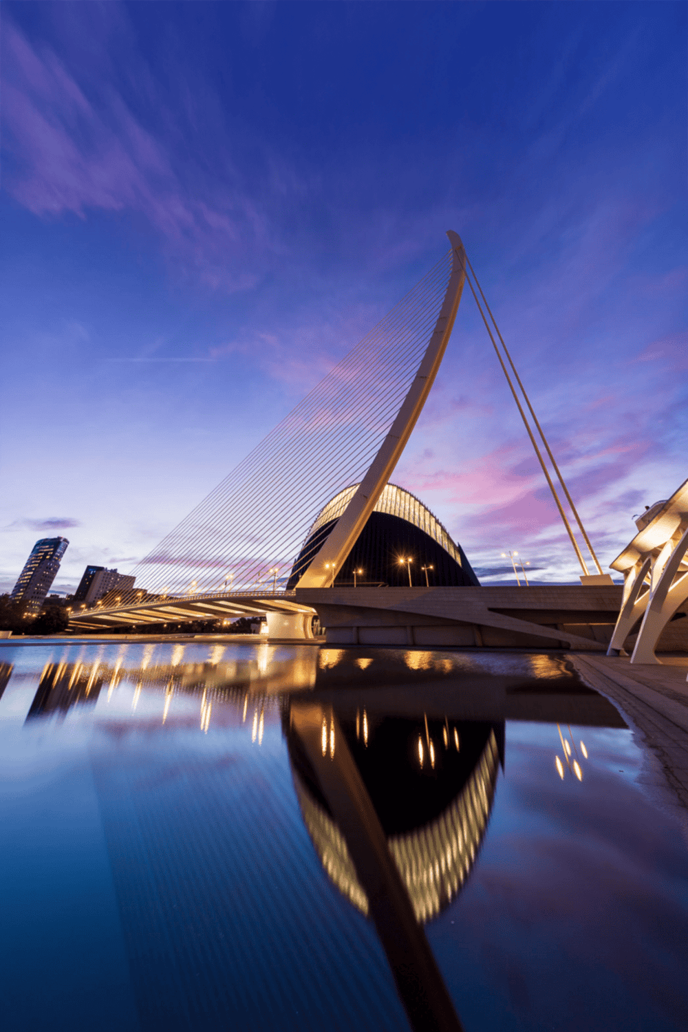 Visitors can stroll across the bridge and admire its sweeping lines and futuristic design. It's a fantastic spot for capturing memorable photographs, especially at sunset when the structure is beautifully illuminated. The bridge also offers panoramic views of the surrounding area, making it ideal for leisurely walks or cycling. It's a perfect stop for those exploring Valencia's modern architecture and vibrant cityscape.