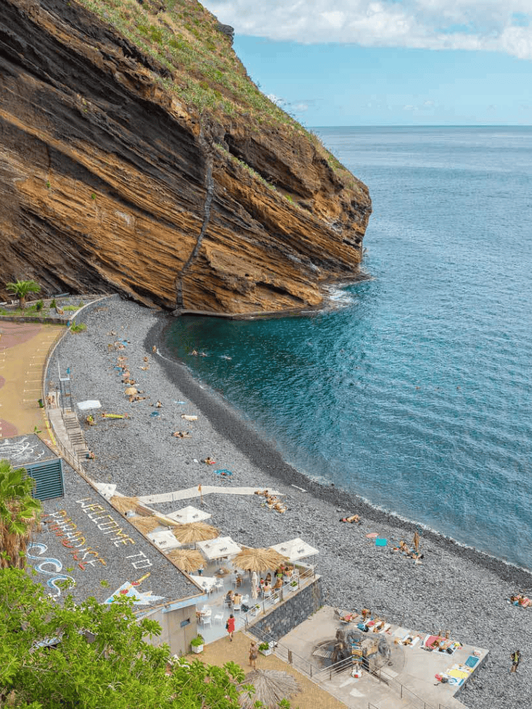 Visitors can enjoy more than just the beach. The nearby cafes and restaurants serve delicious local snacks. It's a delightful spot to enjoy some of Madeira's culinary delights while listening to the sound of the ocean.