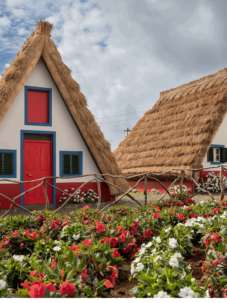 Santana Village dazzles with its iconic triangular houses. Adorned with thatched roofs, these traditional homes offer a charming peek into Madeira's past. Visitors can wander through the cobbled streets, capturing photos and soaking in the quaint atmosphere.
