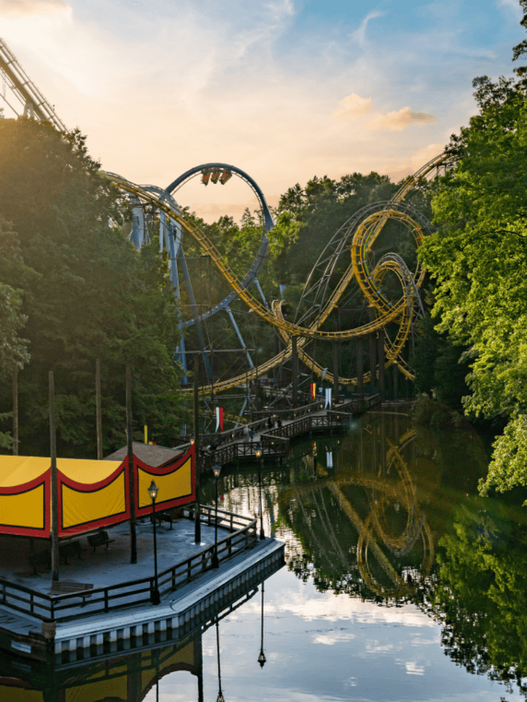 Busch Gardens Williamsburg is an enchanting mix of thrilling rides and vibrant cultural experiences. Visitors can soar through the skies on world-class roller coasters or explore beautifully themed areas representing European countries. There is always something exciting to discover around every corner of the park.