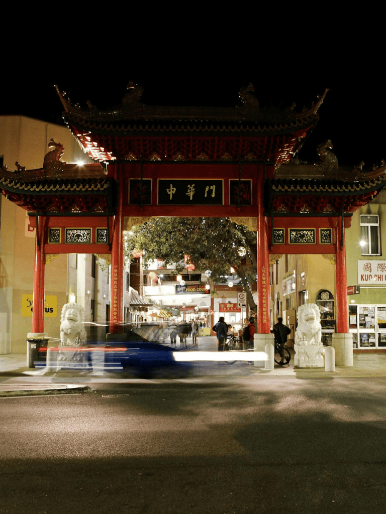 Adelaide's Chinatown is a vibrant hub at the heart of the city. Visitors are greeted by the iconic paifang gates, leading to colorful streets filled with various experiences. The bustling markets offer an array of exotic fruits, spices, and authentic Asian ingredients. Shoppers can enjoy browsing through traditional goods and unique handmade items.
