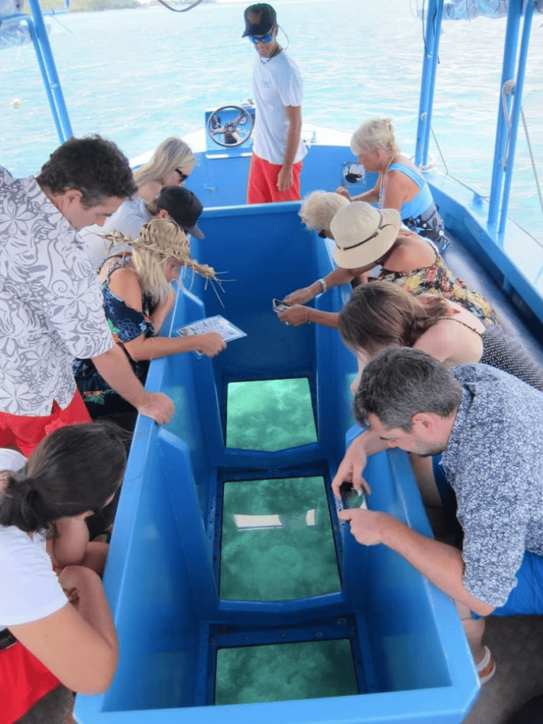 The Glass Bottom Boat Tour offers a window into a vibrant underwater world. As the boat glides over the clear lagoon, travelers get an uninterrupted view of colorful corals and lively sea creatures beneath the surface.