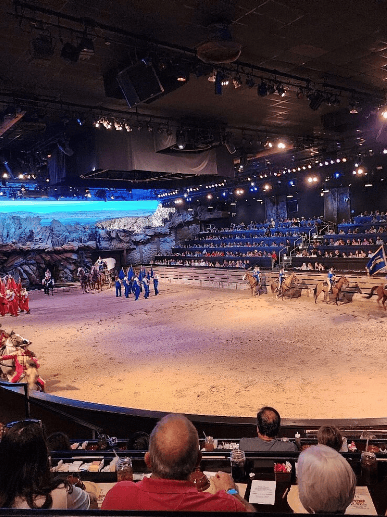 Dolly Parton’s Stampede offers more than a dinner show. It's a captivating experience featuring 32 majestic horses and a talented troupe of riders. The show takes place in an enormous 35,000-square-foot arena, where the action unfolds right before your eyes.
