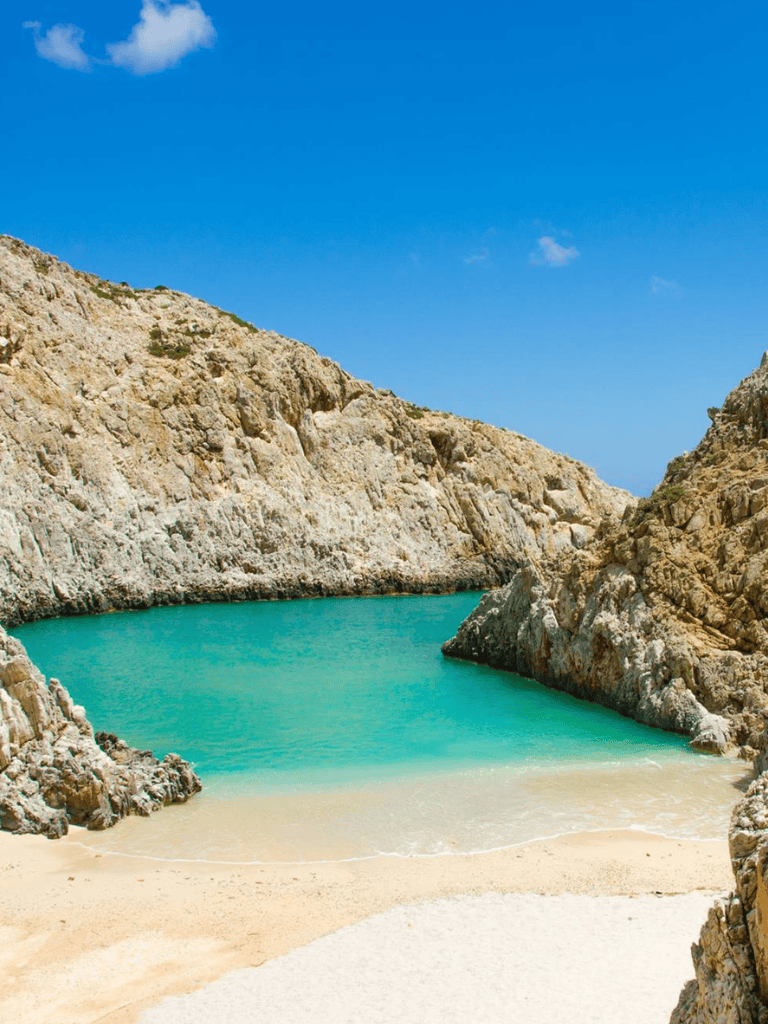 Seitan Limania Beach is a hidden paradise on the Akrotiri Peninsula in Crete. Its stunning turquoise waters and dramatic rocky cliffs create a mesmerizing landscape. This secluded spot offers an escape from the usual tourist crowds.