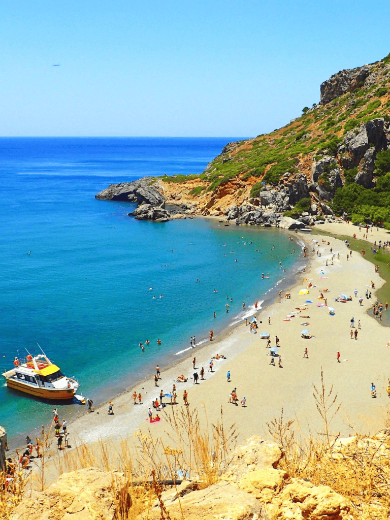Preveli Beach is a gem on the southern coast of Crete. With golden sands and crystal-clear waters, it offers a serene escape. Visitors can experience the unique palm forest that lines the river leading to the beach—perfect for a gentle walk or a picnic.