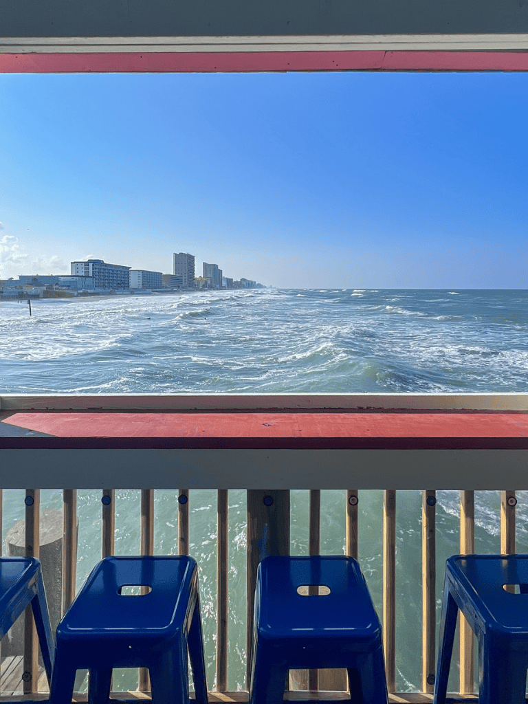 The pier transforms with glowing lights as day turns into night, setting the stage for a relaxed evening by the water. Nearby attractions like thrill rides and gift shops create a lively atmosphere for families and couples looking for fun. Whether a casual dinner with an ocean view or simply soaking in the beach vibe, this pier offers a quintessential Florida experience.