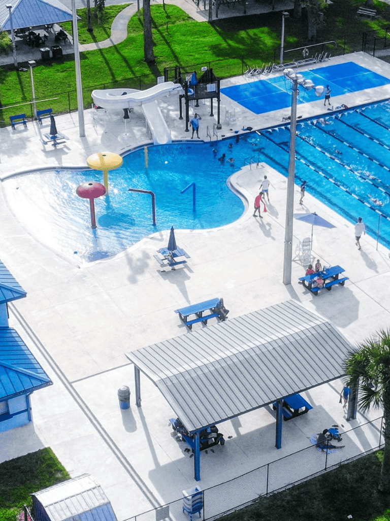 The center also offers various amenities like locker rooms and convenient concessions. After a swim, guests can unwind in the covered picnic area, perfect for a poolside snack. Young swimmers and families will enjoy the lively setting and welcoming atmosphere.