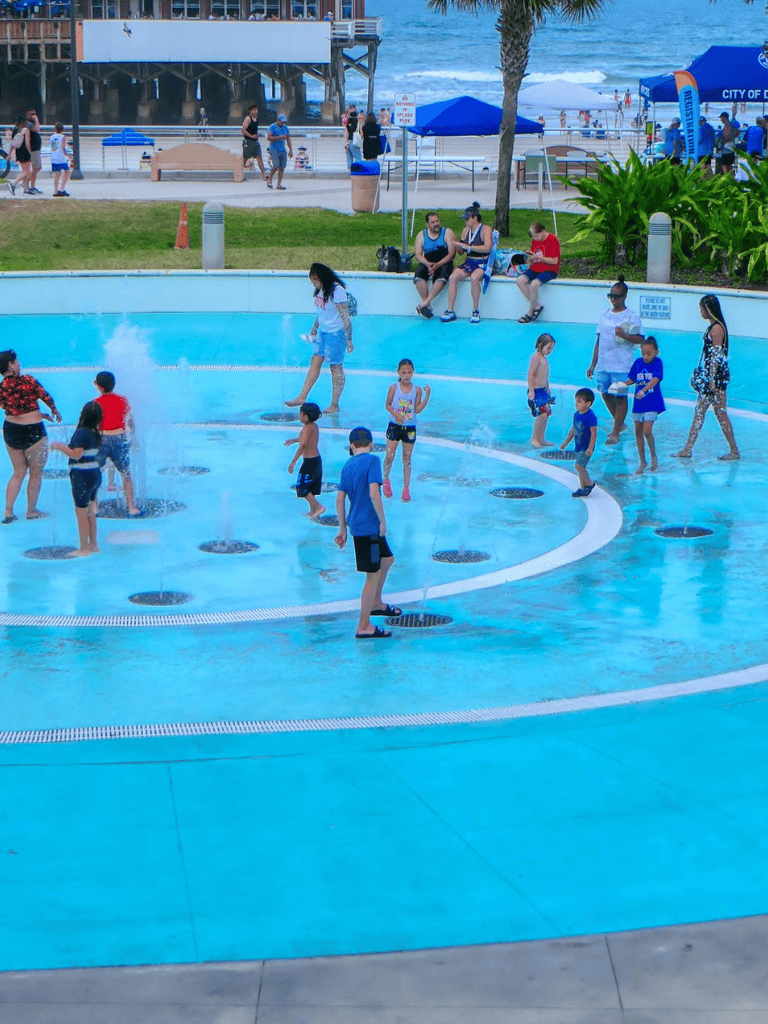 Sun Splash Park combines excitement and convenience, offering outdoor showers, restrooms, and free parking options. The ocean view enhances this vibrant space, making it an unforgettable stop on your Daytona Beach adventure.