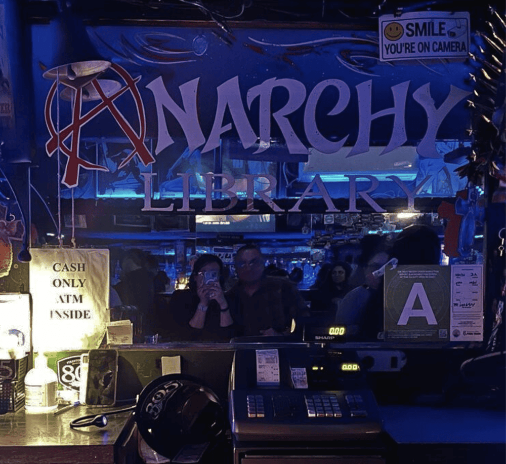Anarchy Library offers a dive bar atmosphere with a unique twist. The interior is adorned with rock and punk posters, instantly hitting visitors with nostalgia. This hotspot plays various music, ranging from 80s hits to punk, alternative, and Spanish rock.