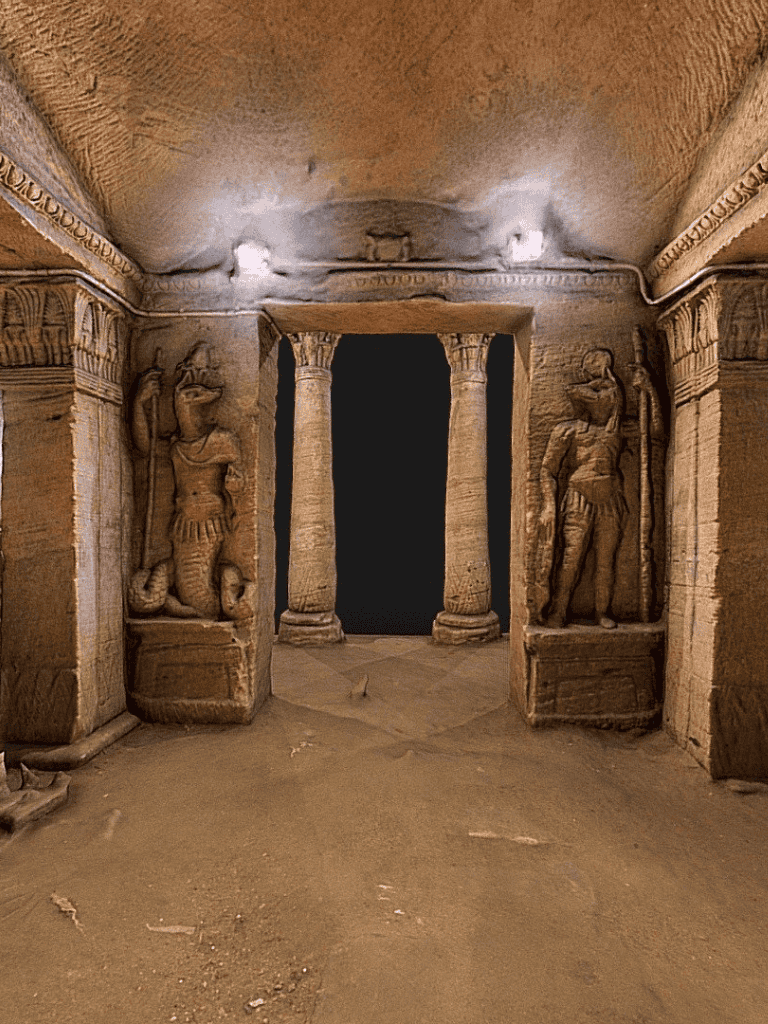 The Great Temple invites visitors to walk among colossal statues and admire the detailed carvings portraying Ramses II’s victories. Inside, the chambers hold intricate hieroglyphs that tell timeless stories. A nightly Sound and Light Show adds magic to the experience, blending history with stunning lighting effects illuminating ancient stones.