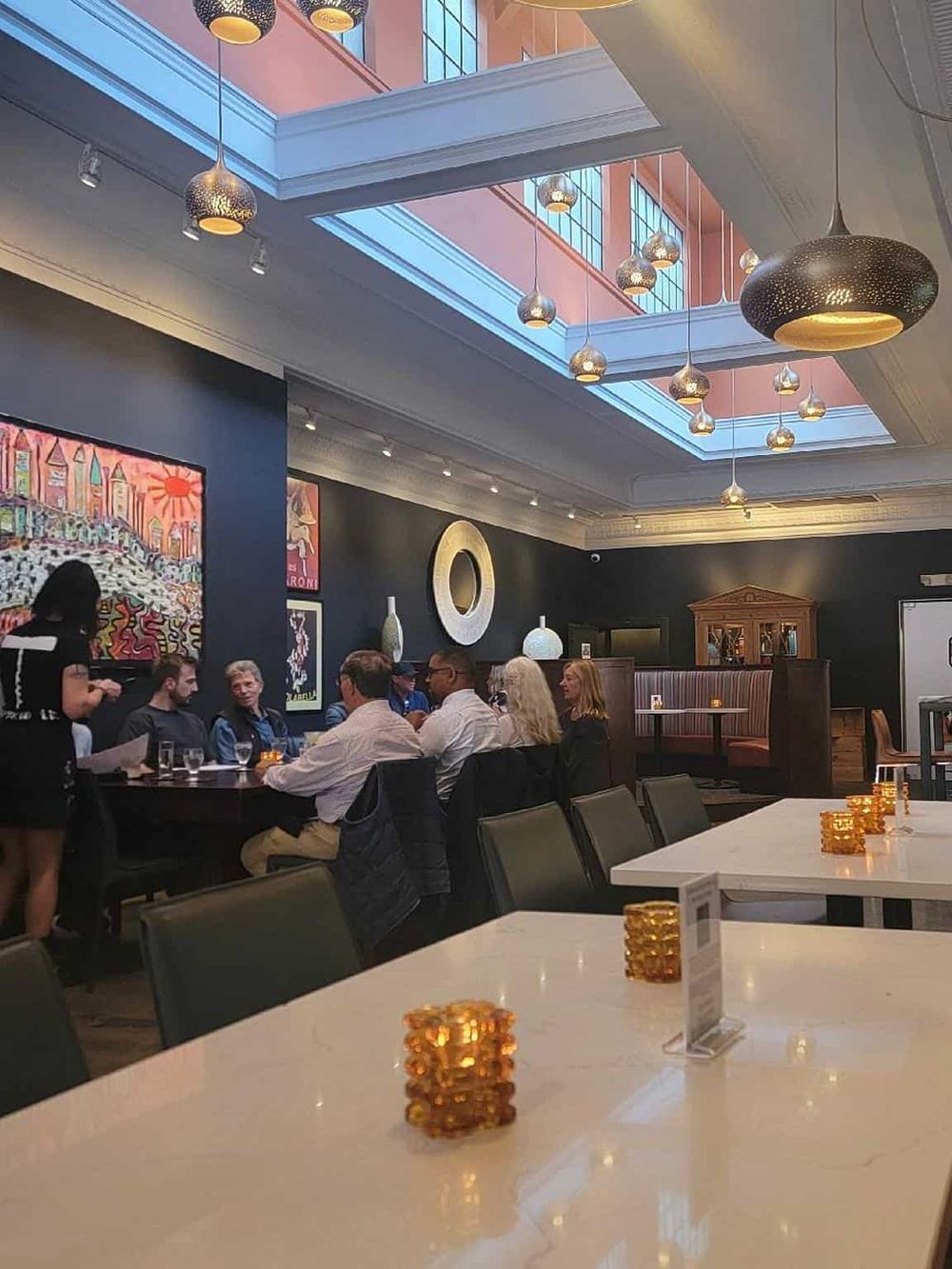 Cork on Saginaw stands out as a distinctive dining destination. Housed in a beautifully restored bank building, it merges historical charm with a modern, relaxed fine dining experience. The spacious interior features high ceilings and large windows, offering diners a glimpse of the historic streets outside.