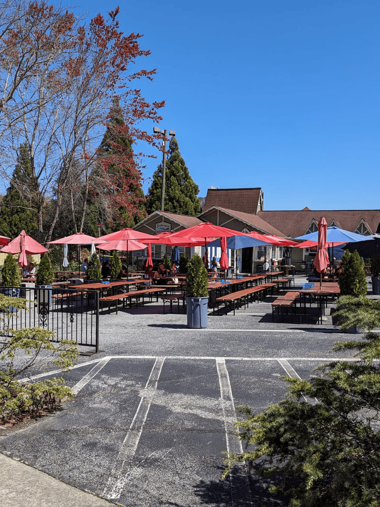 Comfortable picnic tables set the stage for tasty light bites like their famously giant Bavarian pretzels. During Oktoberfest, the energy here is unmatched, making it a must-visit destination for travelers seeking authentic German vibes in the North Georgia mountains.