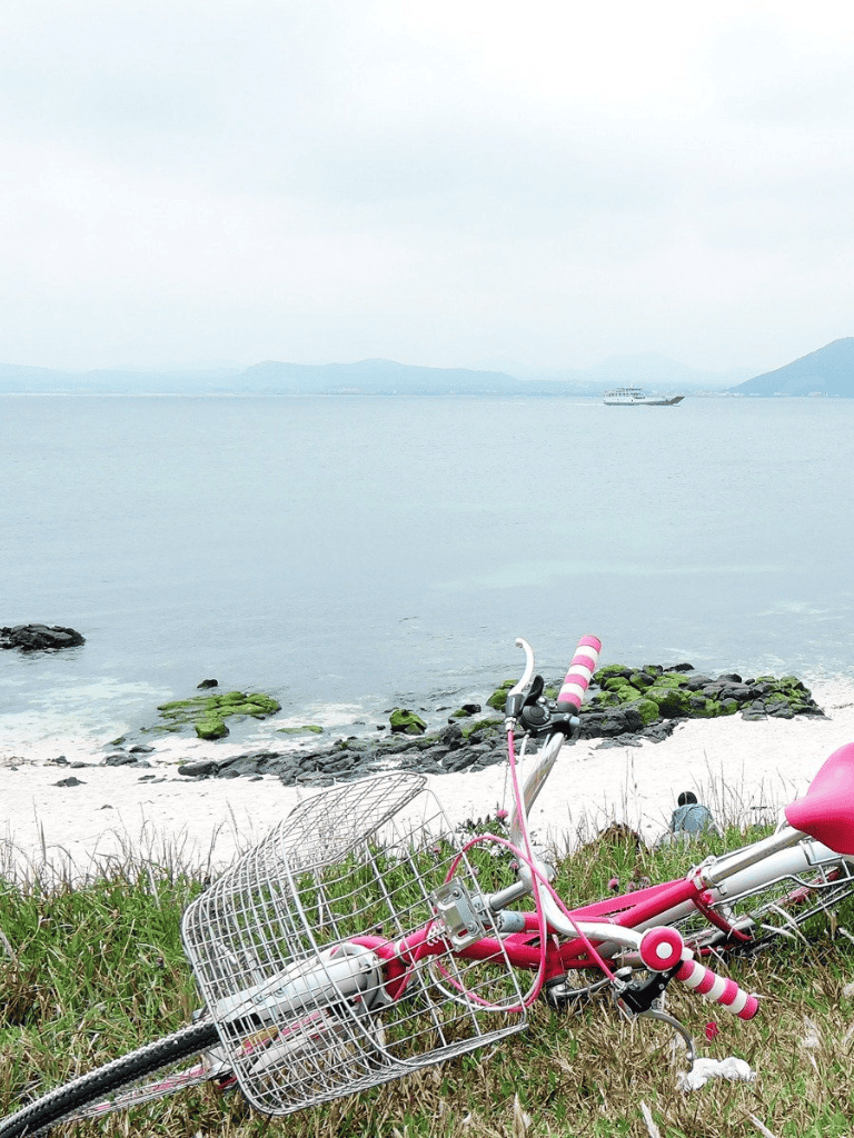 Udo Island offers a world of exciting adventures. Visitors can hop on a ferry for a 15-minute trip from Jeju, arriving at a place with stunning beaches. The dark volcanic rocks contrast beautifully with the white sands, creating a picture-perfect setting.