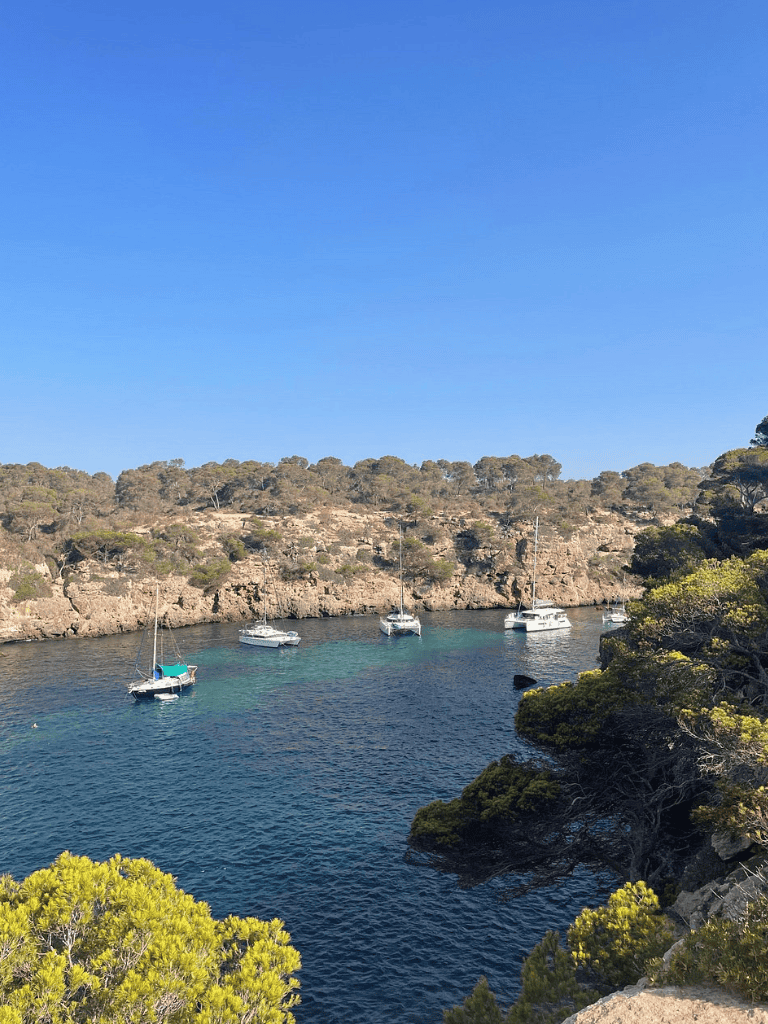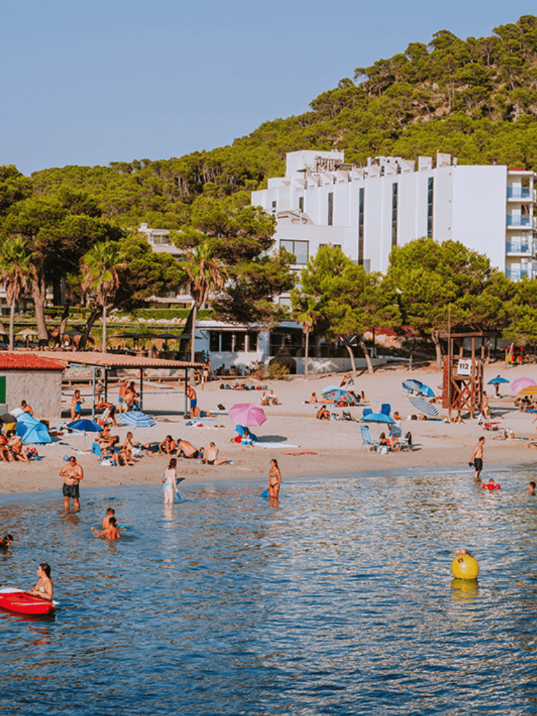 Sunbathing on the soft, white sand is a must, as the beach provides a tranquil escape from the bustling tourist spots. Besides basking under the sun, you can explore nearby coves like Es Pregons Grans and Es Pregons Petits, which offer even more picturesque views and quieter spots for some solitude.
