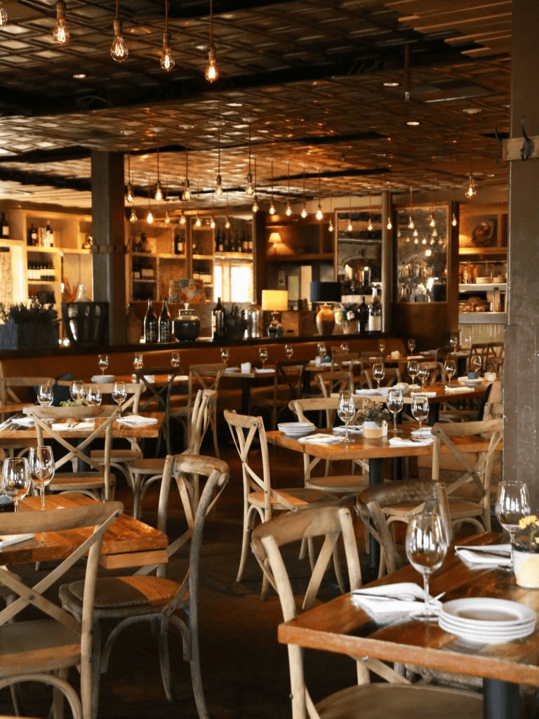 Tin Roof Bistro is a culinary haven blending California charm with Mediterranean-inspired flavors. Its rustic interior, featuring wooden beams and warm lighting, invites guests into a cozy yet vibrant atmosphere. The outdoor patio, shaded by lush greenery, is perfect for savoring a glass of wine under the soft California sun.