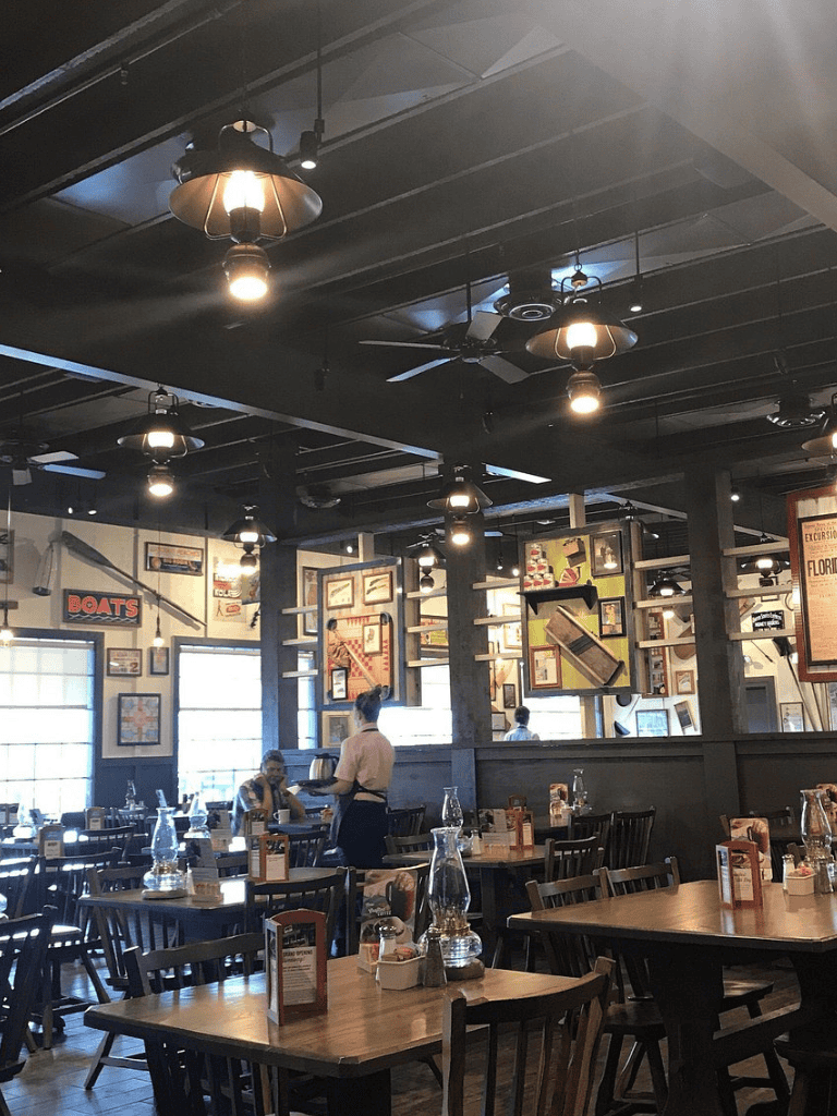 Cracker Barrel takes you on a trip back in time with its nostalgic Southern charm. From the hearty breakfast plates filled with buttermilk biscuits to the country-fried steak dinners, every dish evokes the warmth of home cooking. Wooden rocking chairs and rustic décor complete the inviting, old-country ambiance.