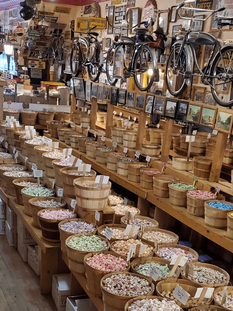 With a vast selection of candies, handcrafted chocolates, and decadent fudge, there’s always something delightful to sample. Alongside the sweets, vintage motorcycles and a 1946 American LaFrance fire truck add a unique flair, making it a memorable stop for both young and old.