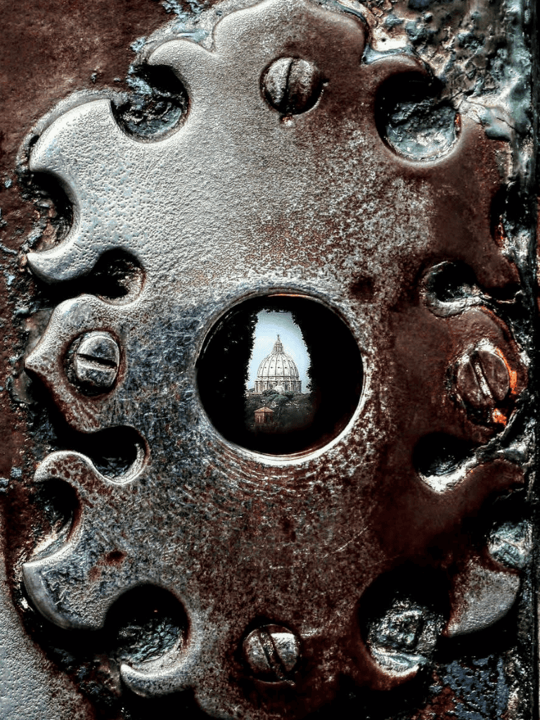 The Aventine Keyhole offers a unique view of Rome that few people know about. It is located on Aventine Hill, at the door of the Knights of Malta Priory. Visitors are often surprised by the view through the keyhole, which perfectly frames the dome of St. Peter's Basilica, bordered by lush hedges. This hidden gem feels like looking through a tiny lens into the heart of Rome.