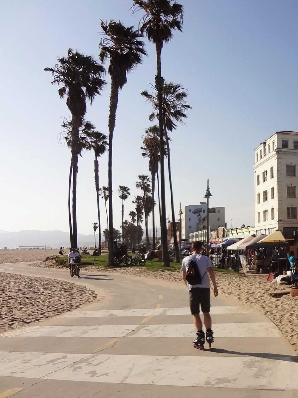 Santa Monica Beach stretches for 3.5 miles along the Pacific Ocean. The soft, sandy shores are perfect for sunbathing and building sandcastles. Bikers and skaters flock to the bike trails, which offer stunning ocean views. Joggers can enjoy a run along the paved paths. Families love the gentle waves, ideal for swimming and playing.