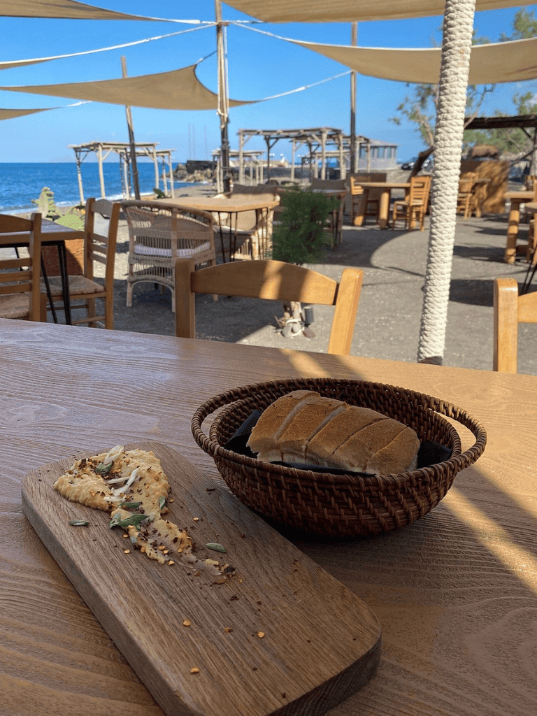 The laid-back ambiance makes it an excellent spot for relaxing and soaking in the tranquil beauty of Santorini.