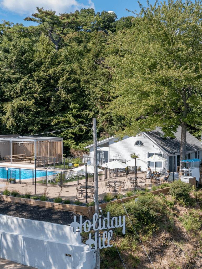 Holiday Hill Resort is in a charming town with comfortable accommodations and inviting amenities. Guests can enjoy picturesque views and peaceful settings, perfect for a relaxing getaway. The resort is close to local attractions, allowing for easy exploration of Saugatuck's vibrant art galleries and unique shops.