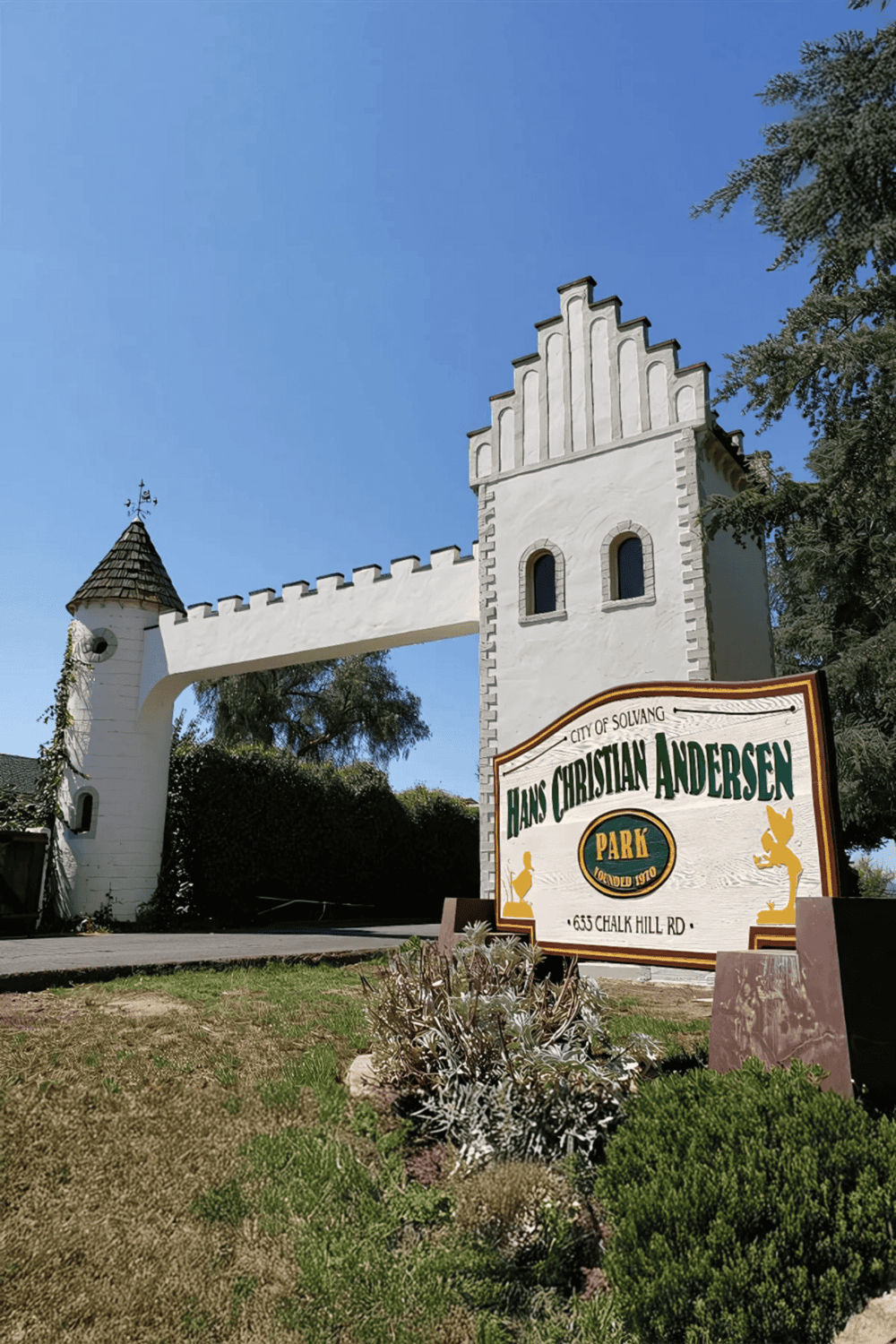 Hans Christian Andersen Park is a hidden gem waiting for adventurers and families. Visitors drive through an enchanting castle arch, greeted by giant live oak trees that create a serene atmosphere. The park offers a well-loved wooden playground perfect for children's laughter.