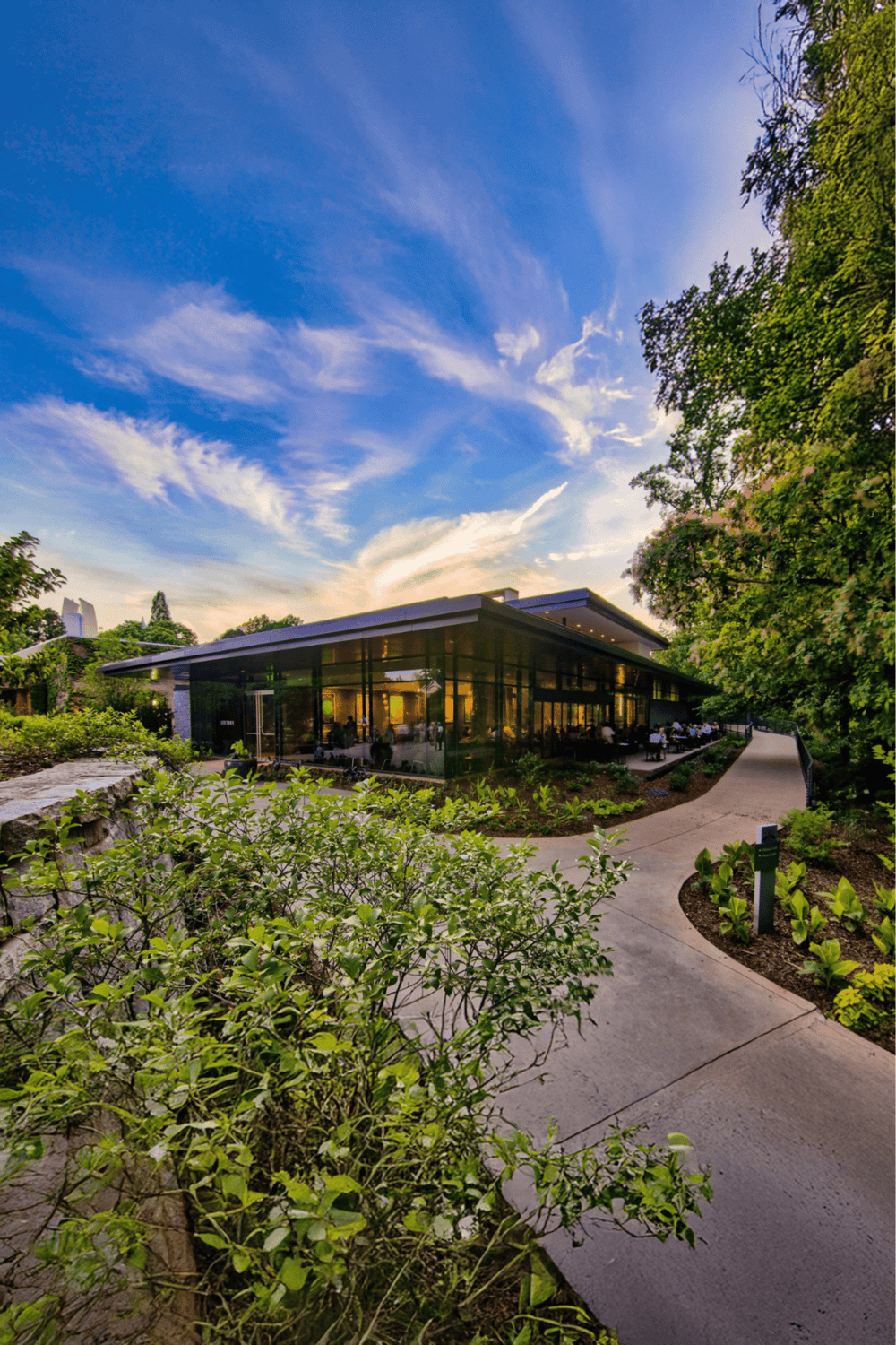 Elevating the guest experience, the Atlanta Botanical Garden recently unveiled a stunning new restaurant created in partnership with celebrated chef Linton Hopkins and executive chef Jason Paolini. Designed by Perkins + Will, the two-level glass and stone structure offers sweeping views of the Anne Cox Chambers Southern Seasons Garden and the city skyline from its rooftop terrace.