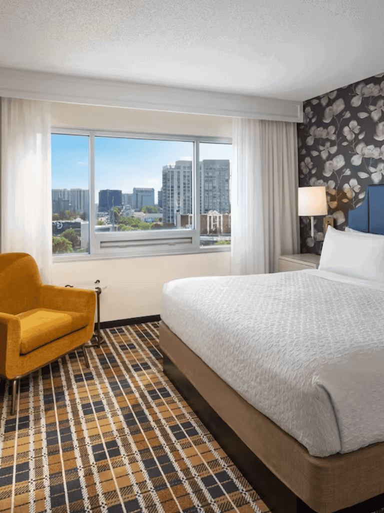 Each of the 326 suites is designed to create a spacious, private retreat. The layout separates the sleeping area from the living room, offering flexibility and functionality. Suites feature blackout curtains, sofa beds, walk-in showers, and allergy-friendly options for sensitive travelers. Guests can choose from conference suites, accessible rooms, two-bedroom family units, and upscale premium floor accommodations.