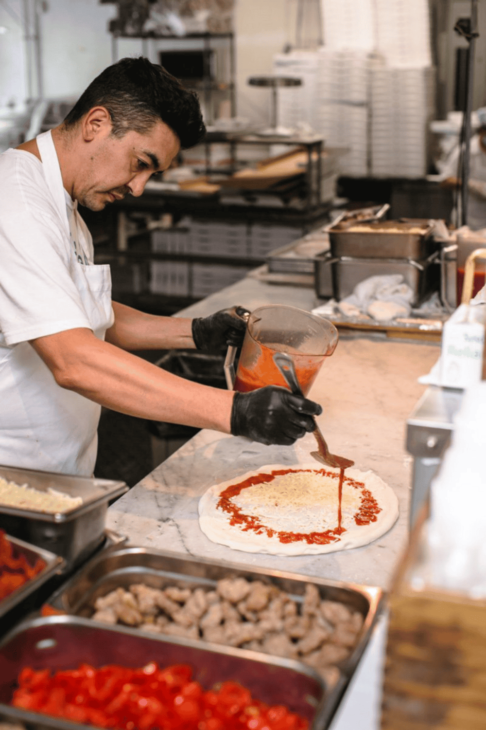 This signature pie is just one of many. Guests can choose from rosso (red sauce) or bianche (white sauce) options, all posted overhead in a bustling order line. Every combination pays tribute to classic Italian flavors, delivering both simplicity and satisfaction.